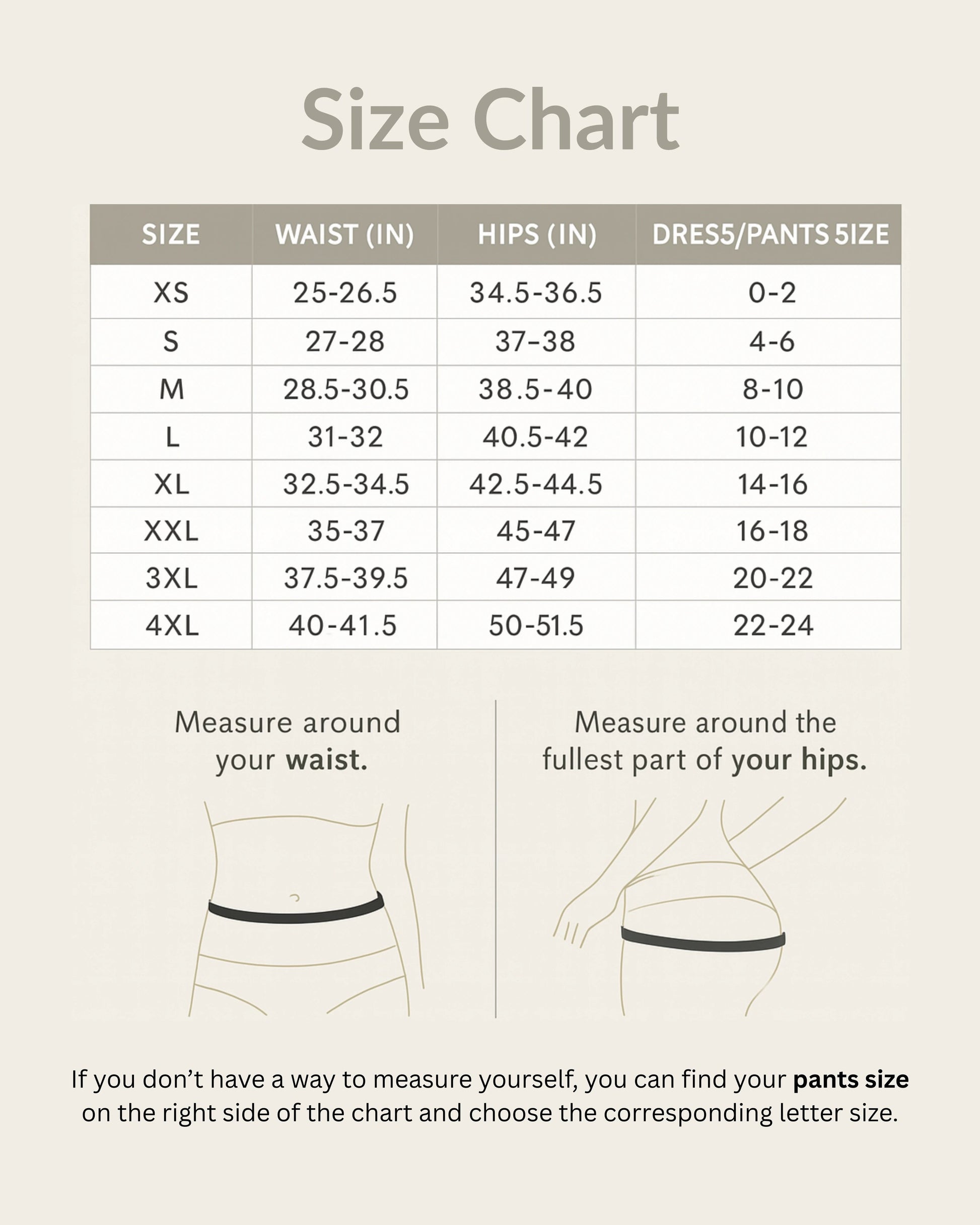 From top of waistband down to leg bands